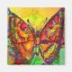 Colourful ,whimsical magic butterfly in Spring ,watercolor painting with golden and silver foil in bright yellow brown blue green gold sparkles .Original watercolor painting with gold and silver foil by Bulgan Lumini (c).
