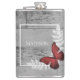 Enjoy your favourite alcoholic beverages anytime with a Red Butterfly Rustic Vinyl Wrapped Flask. Flask design features a vibrant butterfly resting on delicate foliage with a space to add your name against a rustic wooden background. Additional gift items available with this design as well.