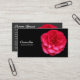 A business card with a Red Camelia. Business name etc on the front with other details on the reverse with the same motif and style.