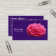 A business card with a red Camelia photo motif. Business name etc on the front with other details on the reverse with the same motif and style.