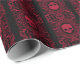 Red Cameo Damask Skulls on Black Wrapping Paper