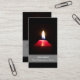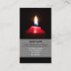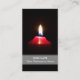 Red candle light illuminates the dark business card