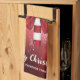 Destei's original illustration of a red and white striped Christmas candy cane treat decorated with a red bow and a Christmas holly / Common holly plant. The background is a festive red bokeh. There are also two personalizable text areas.