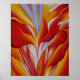 This is a reproduction of “Red Canna”of 1924 by Georgia O’Keefe. This prolific American artist was thirty-six years old when she created this masterpiece which was a continuation of her efforts to create abstract patterns from the forms of nature. This “moher of American modernism” had been recognised for eight years at the time of this work and it was in this year that she married her companion, Alfred Stieglitz. This was only the beginning of her storied career in New York Hawaii and New Mexico. She survived her husband by forty years, dying in Santa Fe in 1986 at the age of ninety-eight years.