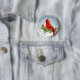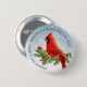 Beautiful red cardinal bird on snow background merry Christmas and happy new year button
