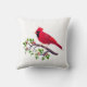 Beautiful red cardinal standing on a tree branch Pillow. Text, only on the front side, can be personalised.
