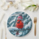 Red Cardinal Bird Wearing Winter Hat Paper Plate