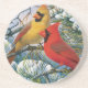 Red Cardinal Birds Winter Snow Ceramic Sandstone coaster.