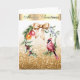Red Cardinal Holly Berry Gold Glitter Holiday Card
