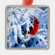 Beautiful Red Cardinal Bird in the Winter Snow. The bird is sitting peacefully on the snow-covered tree branch. This artistic piece is lovely and peaceful.