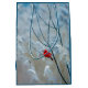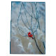 Gift bag with a scenic nature photograph featuring a bright red cardinal. Contrasted against an outdoorsy winter backdrop with snow gently falling down.