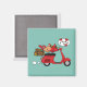 An illustration of a cute cartoon red cardinal lovers riding on a red scooter motorcycle while singing a love song. This kawaii bird couple design is a gift idea for heart lovers and valentines day lovers.
