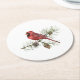 Red Cardinal on Branch Pine Cones Round Paper Coaster