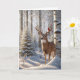 A big buck stands in a serene winter forest, snow gently falling around him with a red cardinal bird perched on his antlers as sunlight illuminates the bird.