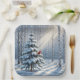 Red Cardinal Perched On Snowy Pine Tree Paper Plate