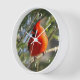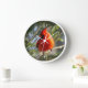Bright red Northern Cardinal in pine tree decorates this eye catching clock. Ideal for home or office décor, adds a lovely nature touch to decorating.