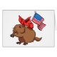 A greetings card featuring a patriotic red cardinal bearing the stars and stripes, astride his stoical groundhog steed. "Customize it" to add a personal message or caption. This cartoon is inspired by some friends who are currently on an American adventure and features two of the critters that have visited their Washington DC back yard.