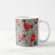 Red Cardinals and Flowers Pattern on Grey Coffee Mug