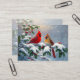 A pair of northern red cardinals perch on a holly branch covered with red berries and snow.
