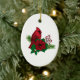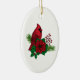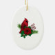 Hand-drawn red cardinal bird perching on a Christmas bouquet of fir branches poinsettia and red berries