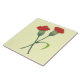 A pair of red carnation buds freshly cut make the centerpiece for this tile.