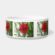 This awesome pet bowl.features a detailed photograph of a stunning red carnation flower. The photograph was taken using macro photography to show the beauty of this bright red bloom surrounded by green foliage.