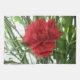 This awesome kitchen towel features a detailed photograph of a stunning red carnation flower. The photograph was taken using macro photography to show the beauty of this bright red bloom surrounded by green foliage.