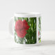This awesome mug features a detailed photograph of a stunning red carnation flower. The photograph was taken using macro photography to show the beauty of this bright red bloom surrounded by green foliage.