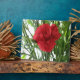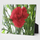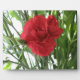 This awesome plaque features a detailed photograph of a stunning red carnation flower. The photograph was taken using macro photography to show the beauty of this bright red bloom surrounded by green foliage.