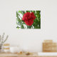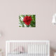 This beautiful print features a detailed photograph of a stunning red carnation flower. The photograph was taken using macro photography to show the beauty of this bright red bloom surrounded by green foliage.