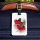 Easily customise the reverse side of this luggage tag which features an image of two brilliant red carnations set on a pearly white brocade fabric background. Make your baggage stand out on an airport carousel!
