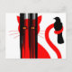 Red cat and black bird illustration postcard