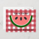 This fun design features a red chequered tablecloth and a slice of watermelon. To change the font style, colour or size, click the Customise It button.