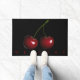 Red Sweet Cherries Black Doormats - Customisable - or Choose / add your favourite background colours / or text with Customisation tool ! Welcome - MIGNED Design