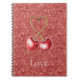 Red Cherries Heart Love Glitter Notebook