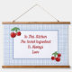 Red Cherries on Blue Checked Kitchen Hanging Tapestry