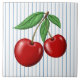 Red Cherries on Blue Stripes Graphic Pattern Ceramic Tile