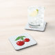 Red Cherries on Blue Stripes Graphic Pattern Coaster