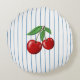 Red Cherries on Blue Stripes Pattern Round Cushion