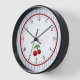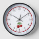Red Cherries on Blue Stripes Retro Style Framed Clock