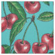 Red cherries on turquoise fabric