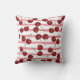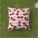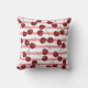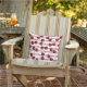 This summer outdoor pillow features a colourful pattern of red cherries on a pink striped background.