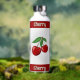 Original graphic design of bright red cherries that you can personalise with your own name or text and change the background colour if desired.