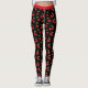 Fun colourful leggings patterned with bright red cherries on a black background.