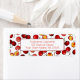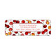 Personalised red cherries return address label design with your custom return address printed in red over an illustrated pattern of different types of cherries. These are the perfect return address labels for anyone who loves cherries and cherry stationery.