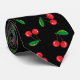Black tie printed with a bright red summer cherries pattern