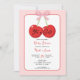 Red Cherries with Pink Bow Coquette Baby Shower Invitation