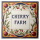 "custom house name plate", "personalised house name plaque", "personal customised text sign", "cherry farm casa ceramic tile", "red cherries fruit grower", "yellow green farmer art", "traditional summer vacation nature", "last family name surname", "farmhouse holiday home signage", "decorative rustic farming villa"
