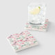 The coasters are gorgeous, a quality feel and heavy weight. They look like a precious archeological find. A rustic stone juxtaposed with a modern floral black and white print. I like the way the print goes slightly imperfect on the cut stone edges giving them a kind-of natural beauty.