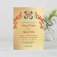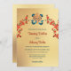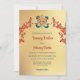 This Tibetan wedding invitation features a golden Endless Knot and red flowers an a golden background.